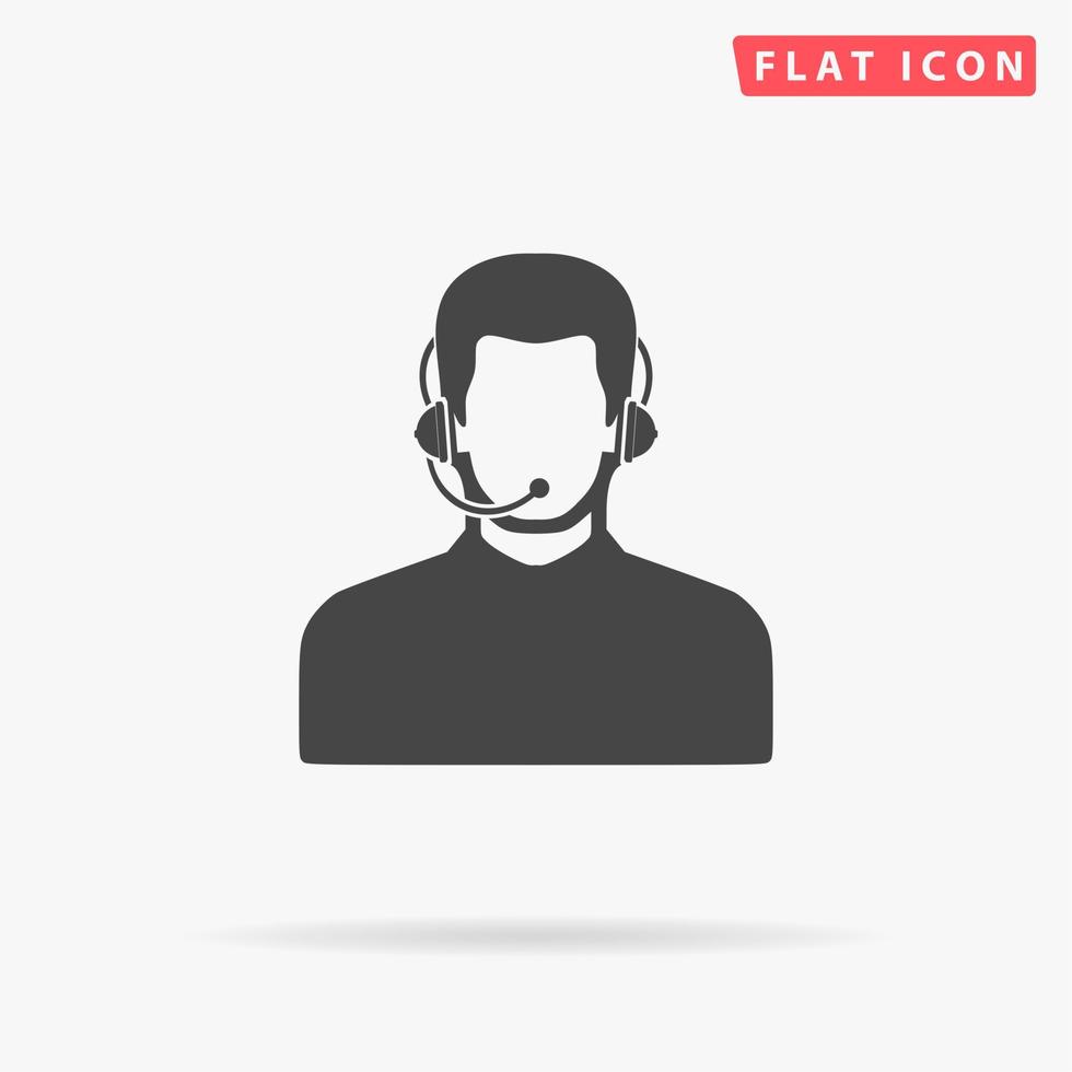 Call center operator with headset. Simple flat black symbol with shadow on white background. Vector illustration pictogram Pro Vector