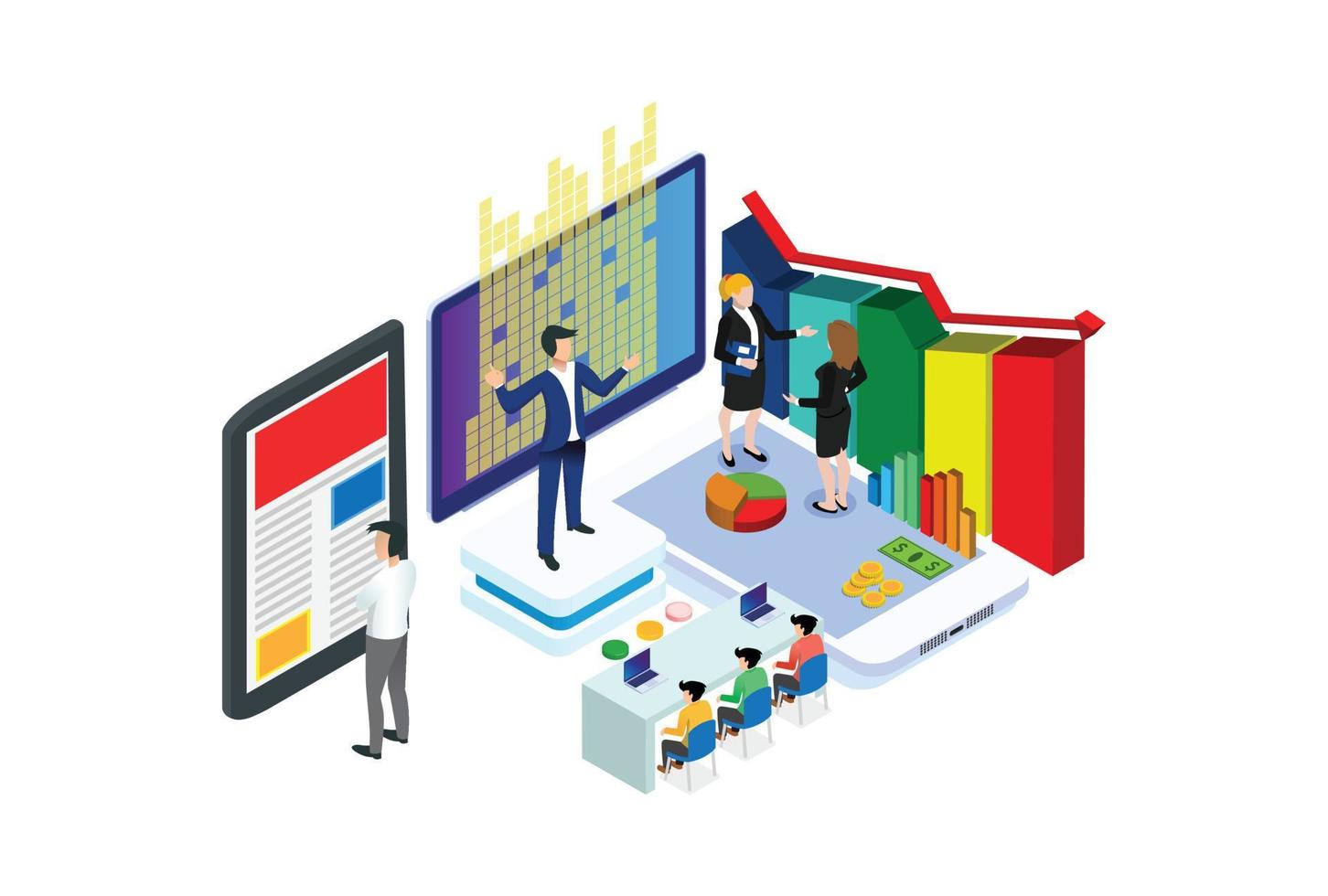 Modern Isometric Data Analysis Illustration, Web Banners, Suitable for Diagrams, Infographics, Book Illustration, Game Asset, And Other Graphic Related Assets Pro Vector