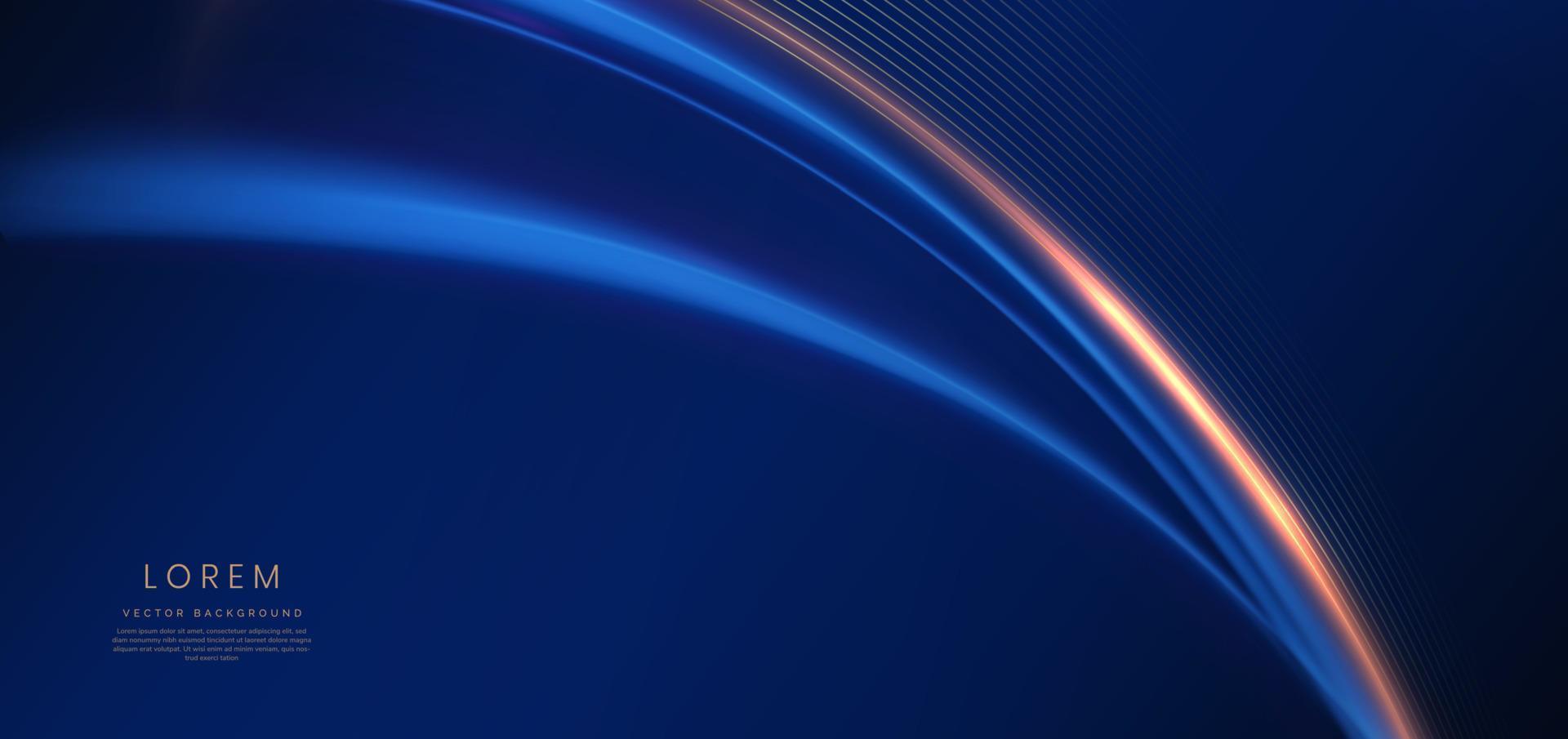 Luxury curve golden lines on dark blue background with lighting effect copy space for text. Luxury design style. Pro Vector