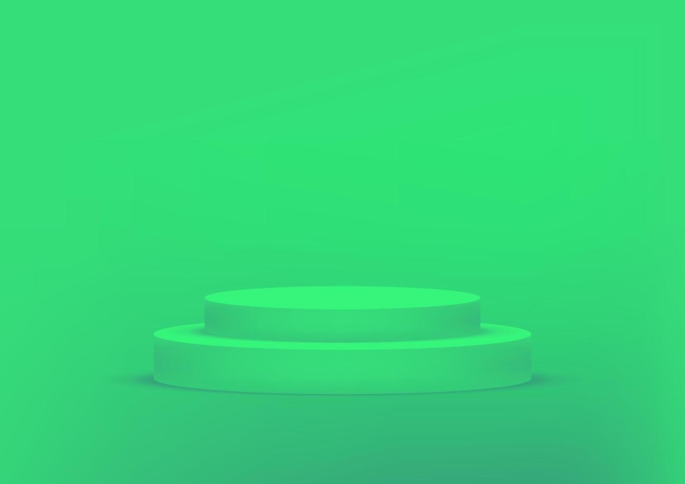 Empty podium studio green background for product display with copy space. Showroom shoot render. Pro Vector