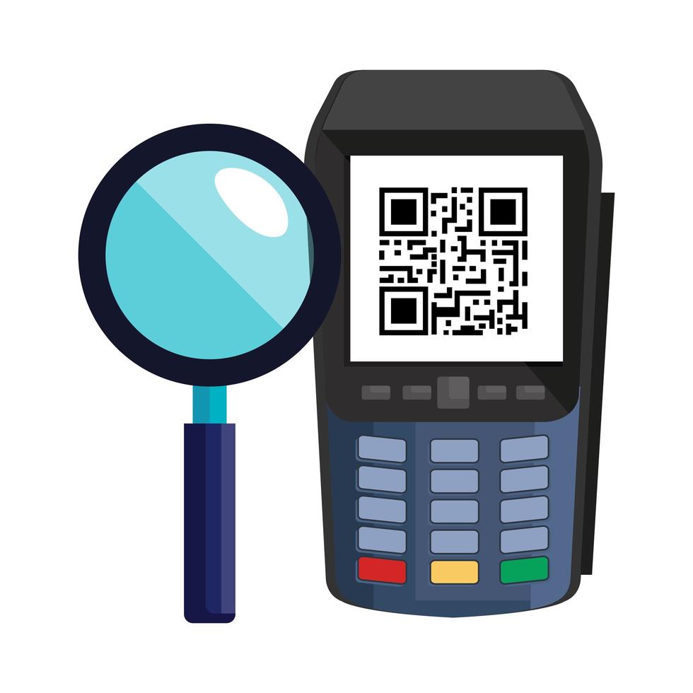 dataphone with scan code qr and magnifying glass vector