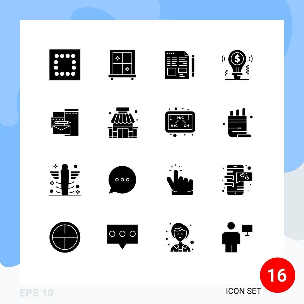 Mobile Interface Solid Glyph Set of 16 Pictograms of building identity idea branding solution Editable Vector Design Elements