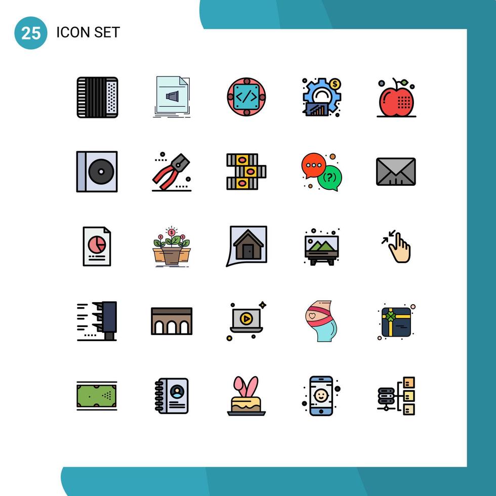 Set of 25 Modern UI Icons Symbols Signs for graph analytics sound analysis management Editable Vector Design Elements