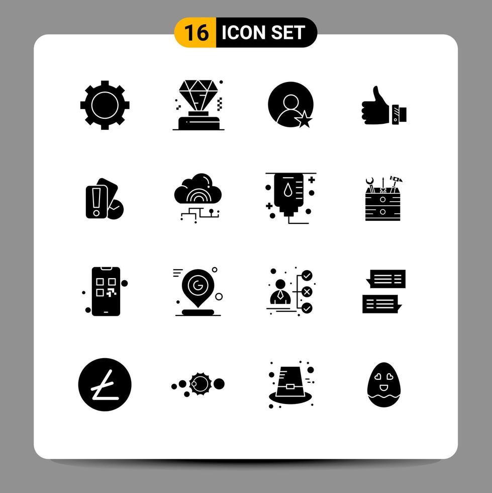 User Interface Pack of 16 Basic Solid Glyphs of hand thumbs user solution finger Editable Vector Design Elements Free Vector and Free SVG