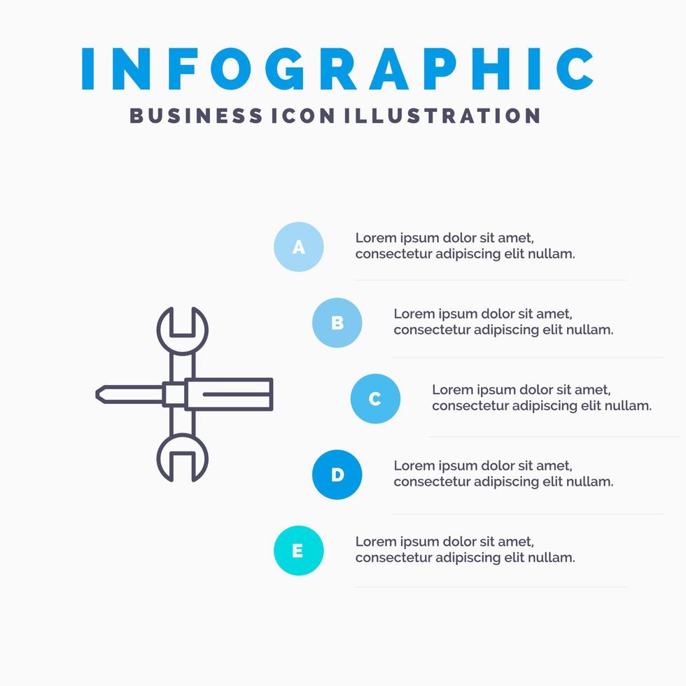 Settings Controls Screwdriver Spanner Tools Wrench Line icon with 5 steps presentation infographics Background vector