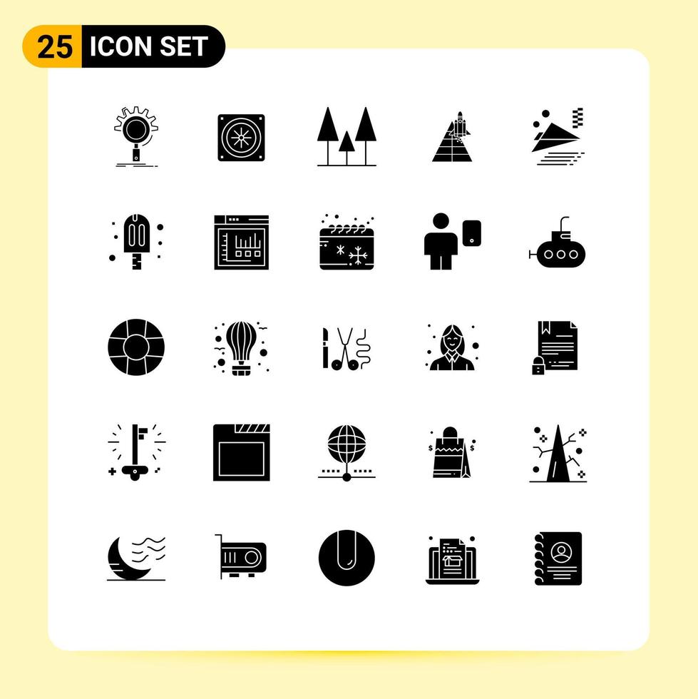 25 Universal Solid Glyphs Set for Web and Mobile Applications paper plane launch forest space craft station Editable Vector Design Elements Free Vector