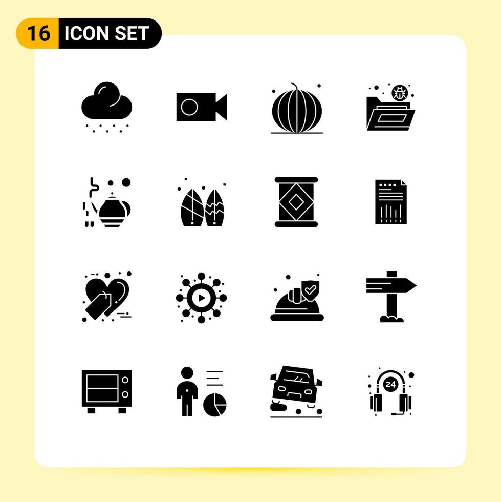 User Interface Pack of 16 Basic Solid Glyphs of teapot virus pumpkin security file Editable Vector Design Elements Free Vector