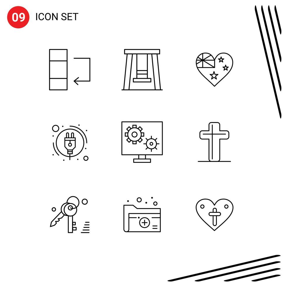 9 Outline concept for Websites Mobile and Apps setting preference flag gear power Editable Vector Design Elements