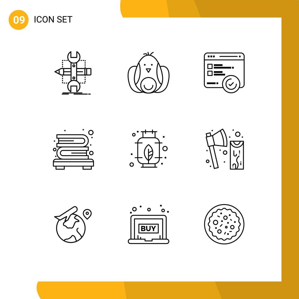 Outline Pack of 9 Universal Symbols of gas bookshelf easter books web Editable Vector Design Elements Free Vector
