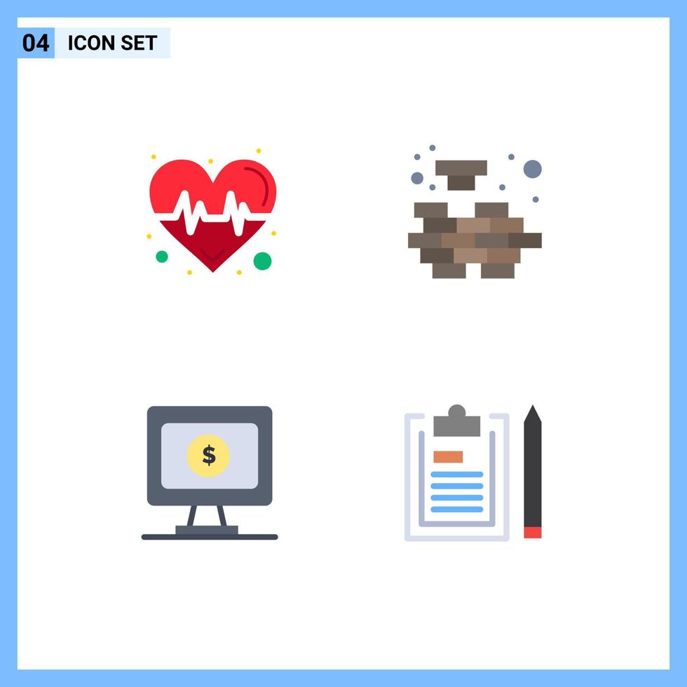 Editable Vector Line Pack of 4 Simple Flat Icons of pulse dollar science problem clipboard Editable Vector Design Elements Free Vector
