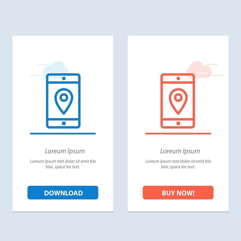 Application Mobile Mobile Application Location Map Blue and Red Download and Buy Now web Widget Card Template Free Vector