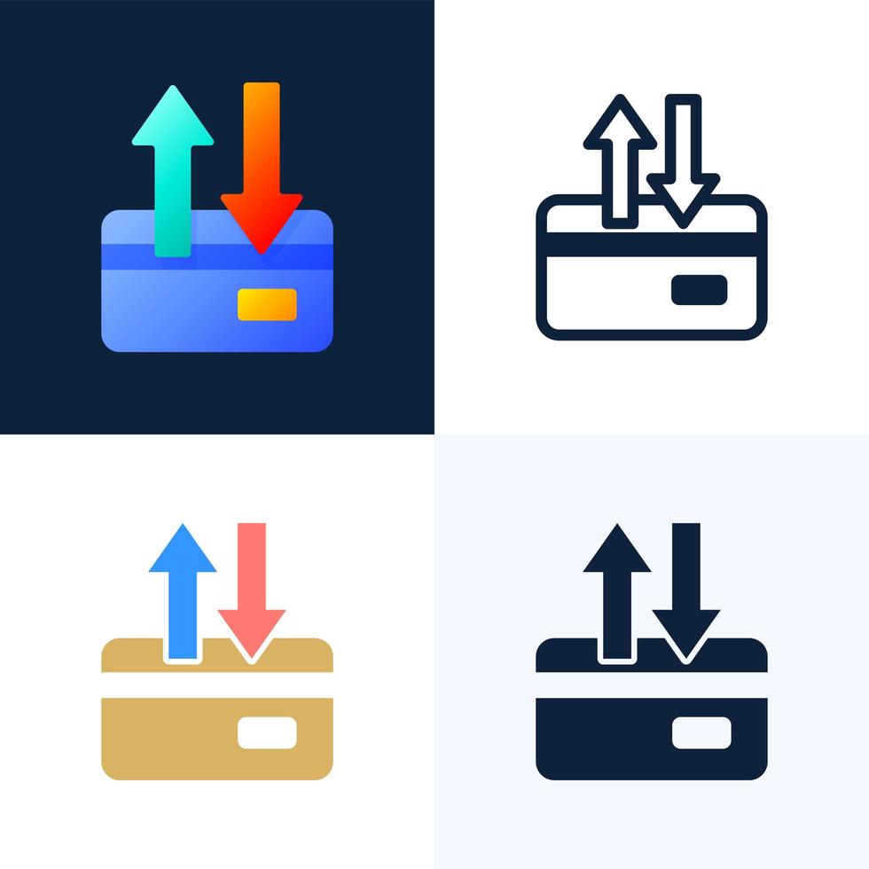 Up and down arrows Credit card vector stock icon set. The concept of data transfer, transactions of a bank account. Back side of a credit card with two arrows. Pro Vector
