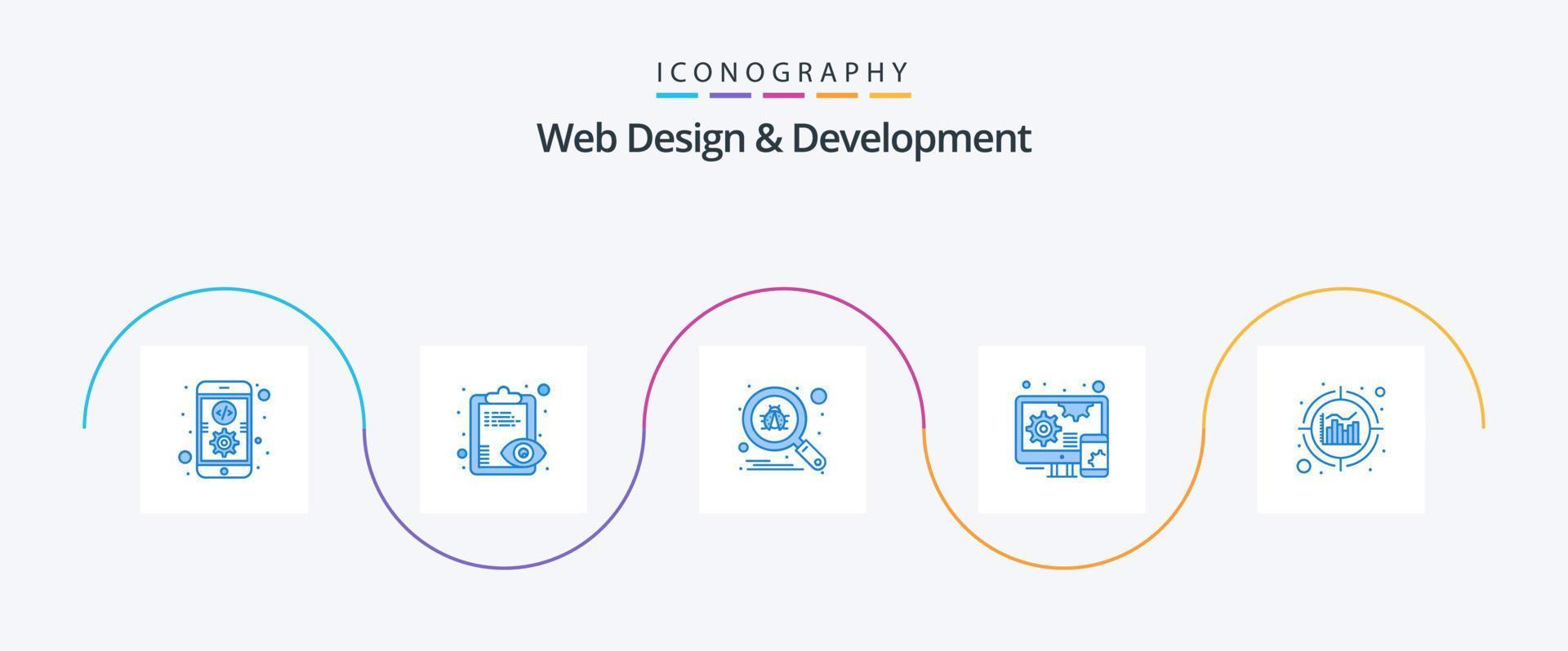 Web Design And Development Blue 5 Icon Pack Including information. analytics. bug. responsive. adaptive Free Vector