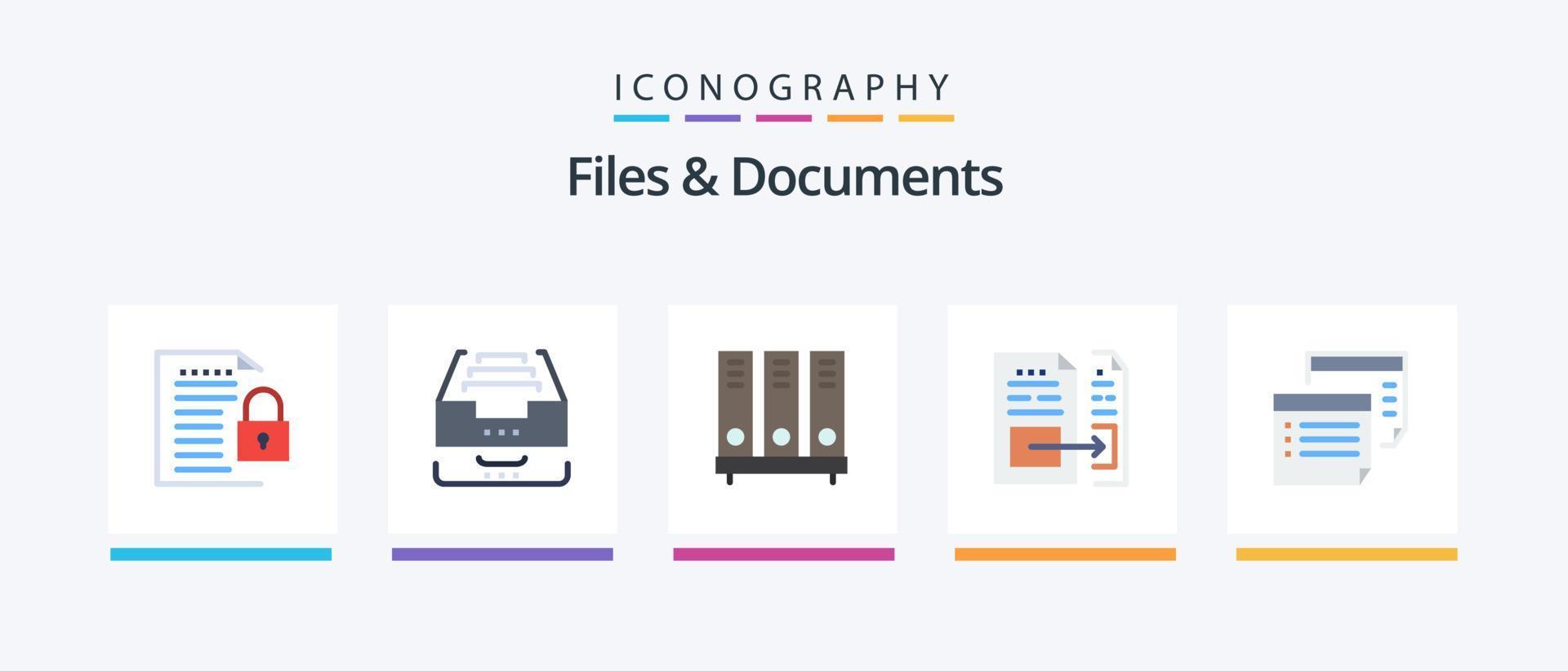 Files And Documents Flat 5 Icon Pack Including document. account. document. file. database. Creative Icons Design vector
