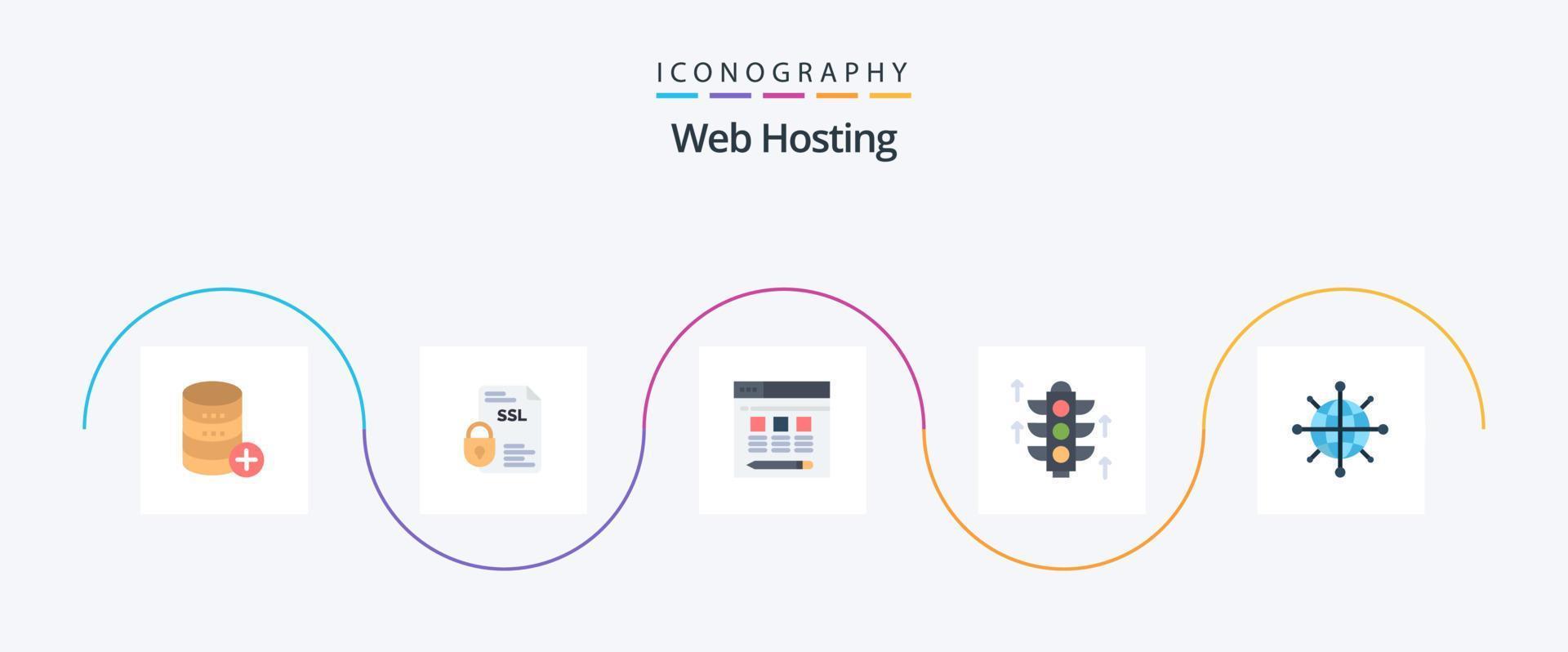 Web Hosting Flat 5 Icon Pack Including network. server. security. light. hosting vector