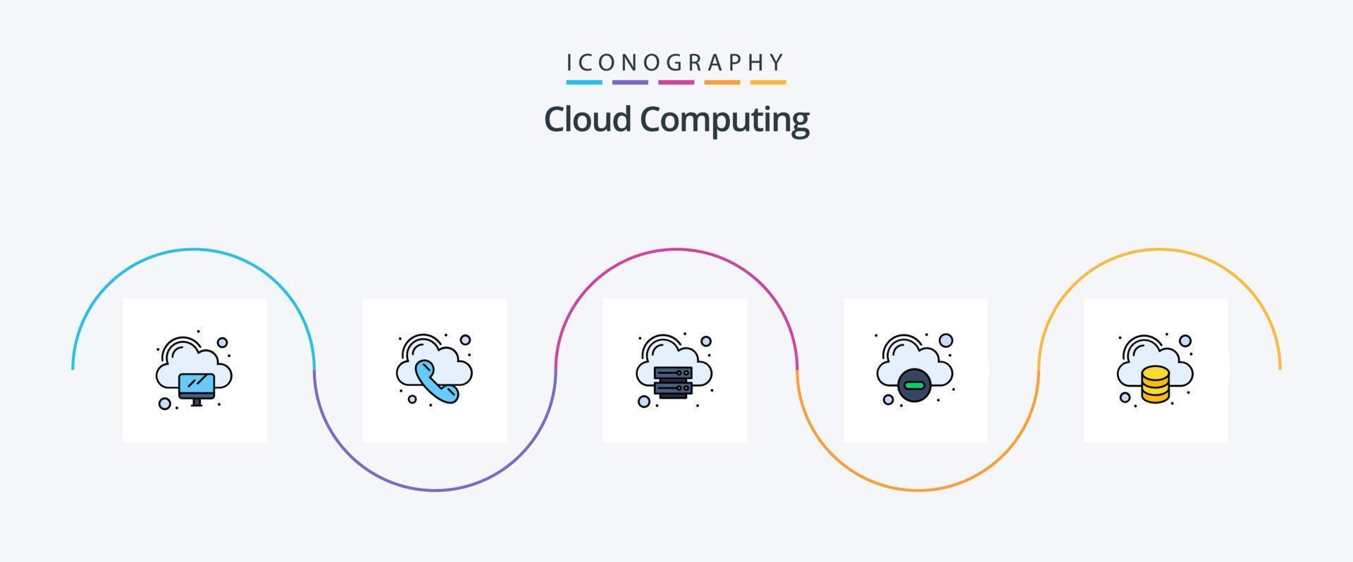 Cloud Computing Line Filled Flat 5 Icon Pack Including data. delete. cloud. remove. cloud vector
