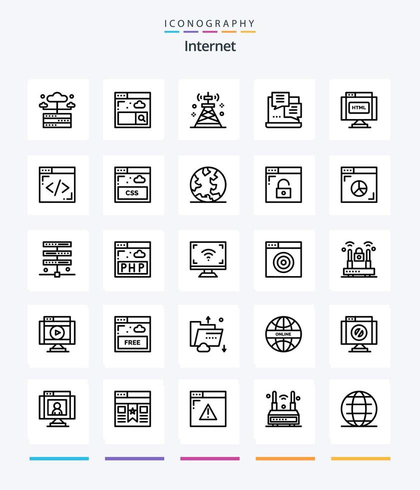 Creative Internet 25 OutLine icon pack  Such As find. web. network. script. development vector
