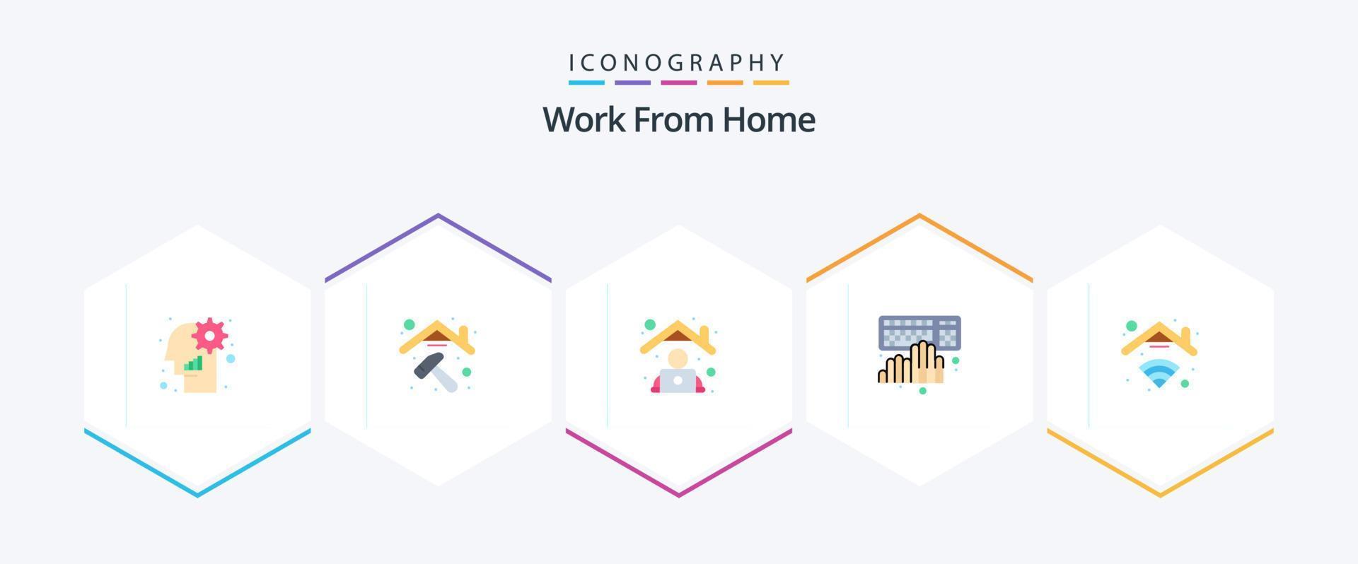 Work From Home 25 Flat icon pack including home. typing. employee. programming. coding vector