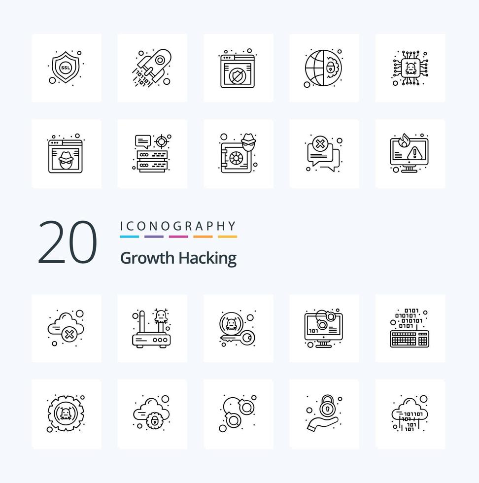 20 Hacking Line icon Pack like warn secured router code private Free Vector
