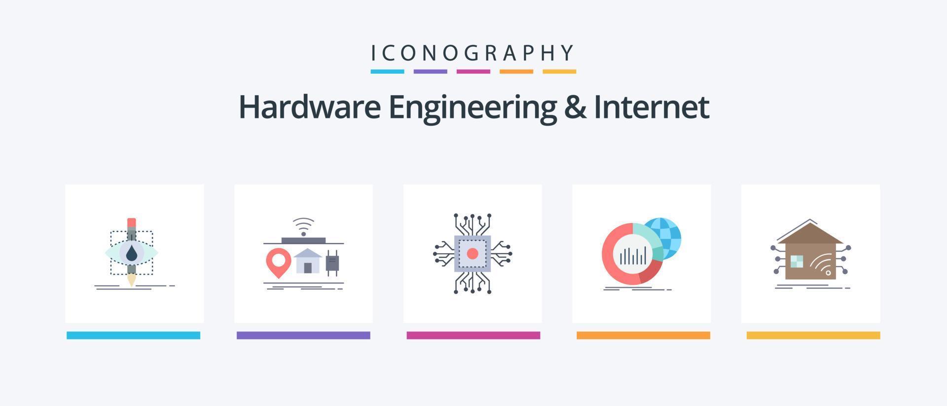 Hardware Engineering And Internet Flat 5 Icon Pack Including data. big. of. technology. microchip. Creative Icons Design vector