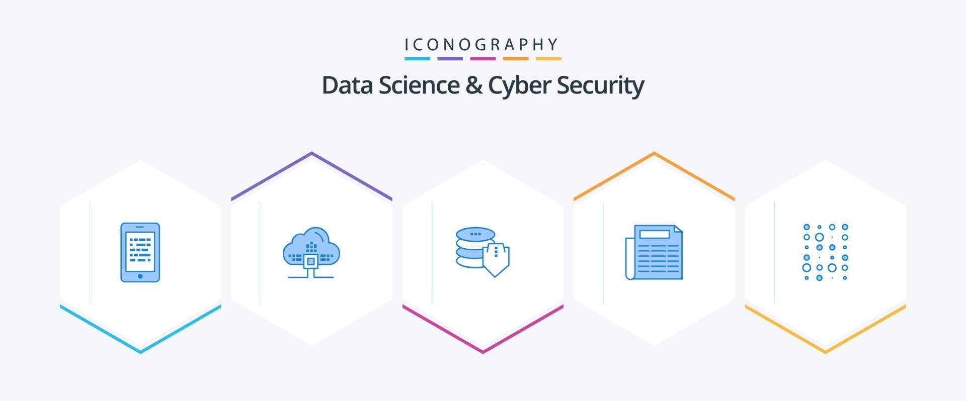 Data Science And Cyber Security 25 Blue icon pack including data. document. scince. paper. secure vector