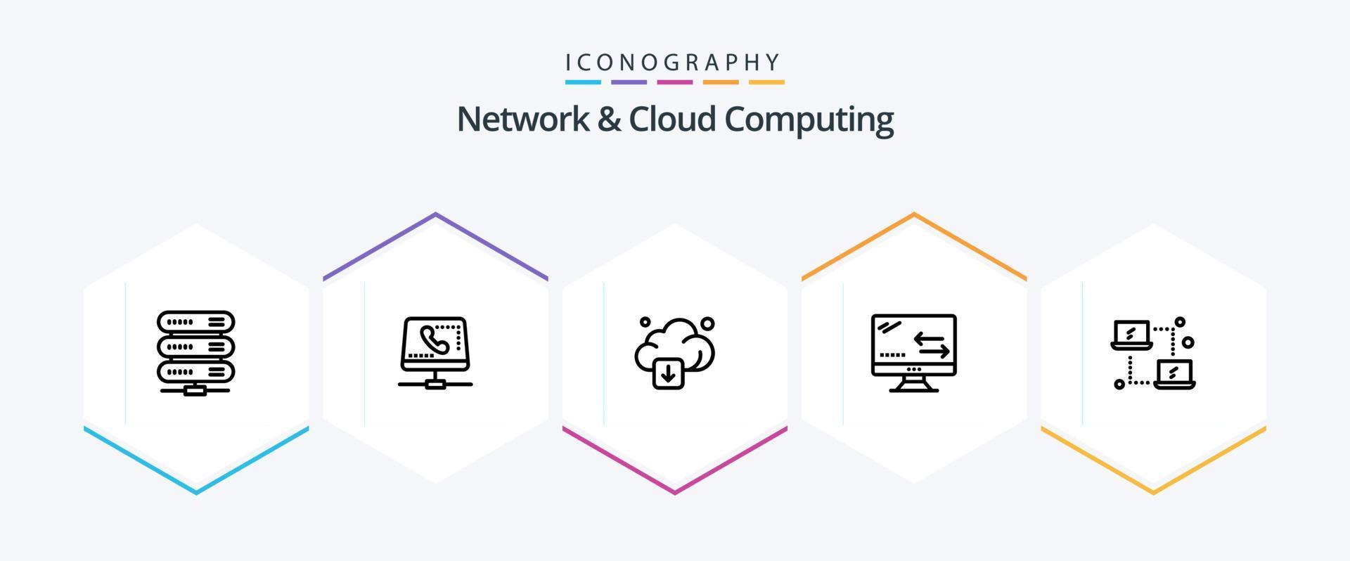 Network And Cloud Computing 25 Line icon pack including computing. arrows. computing. connection. technology vector