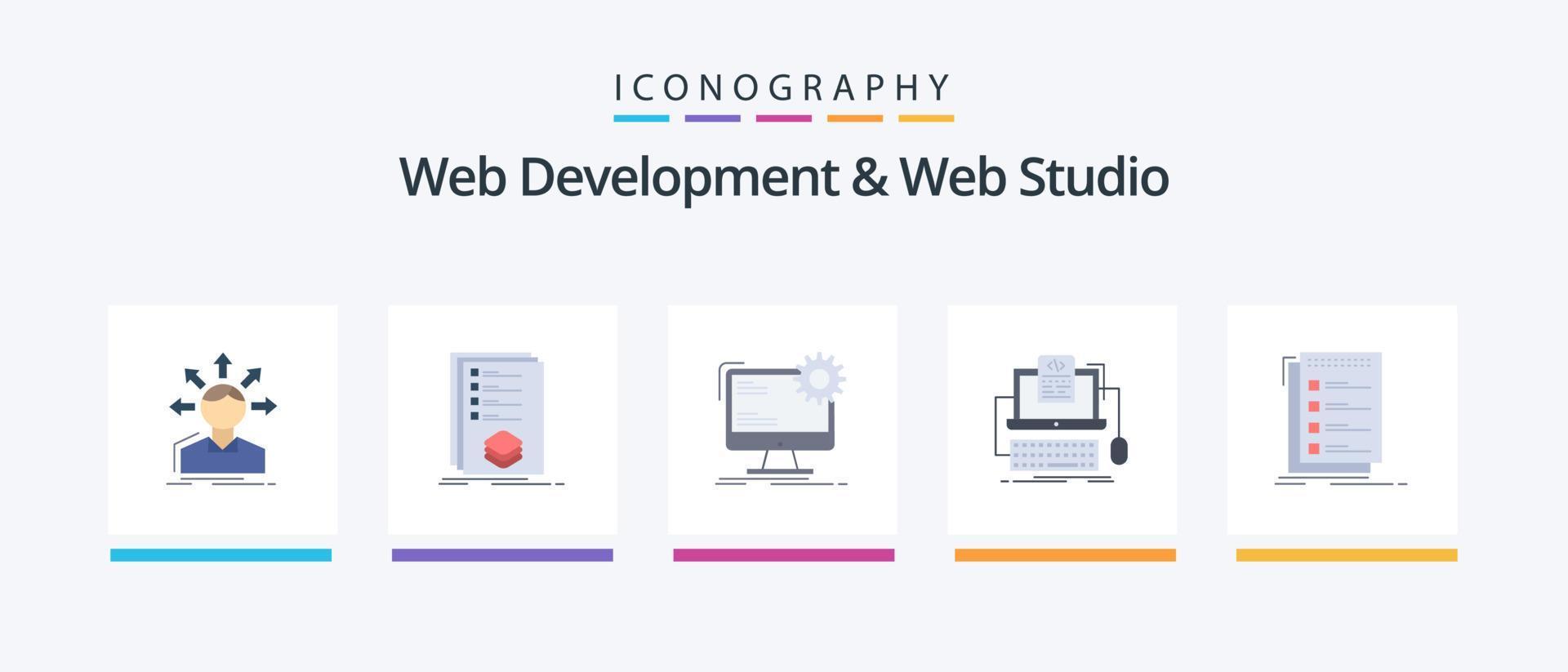 Web Development And Web Studio Flat 5 Icon Pack Including computer. code. listing. static. page. Creative Icons Design vector