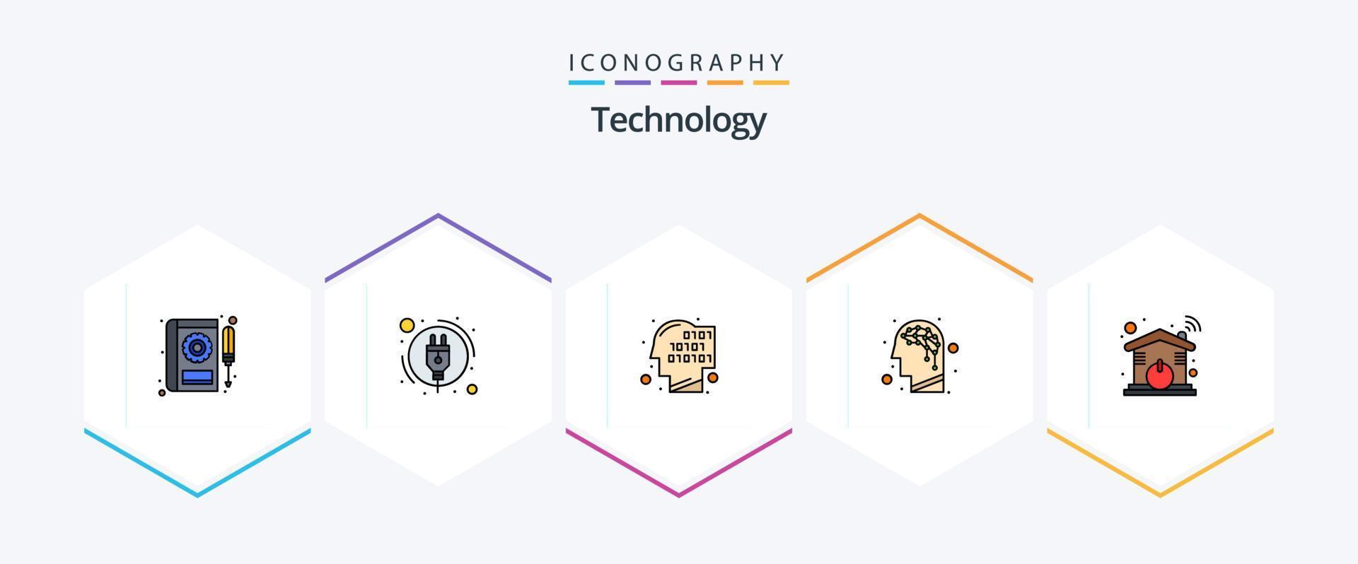 Technology 25 FilledLine icon pack including smart. automation. binary. intelligence. artificial vector