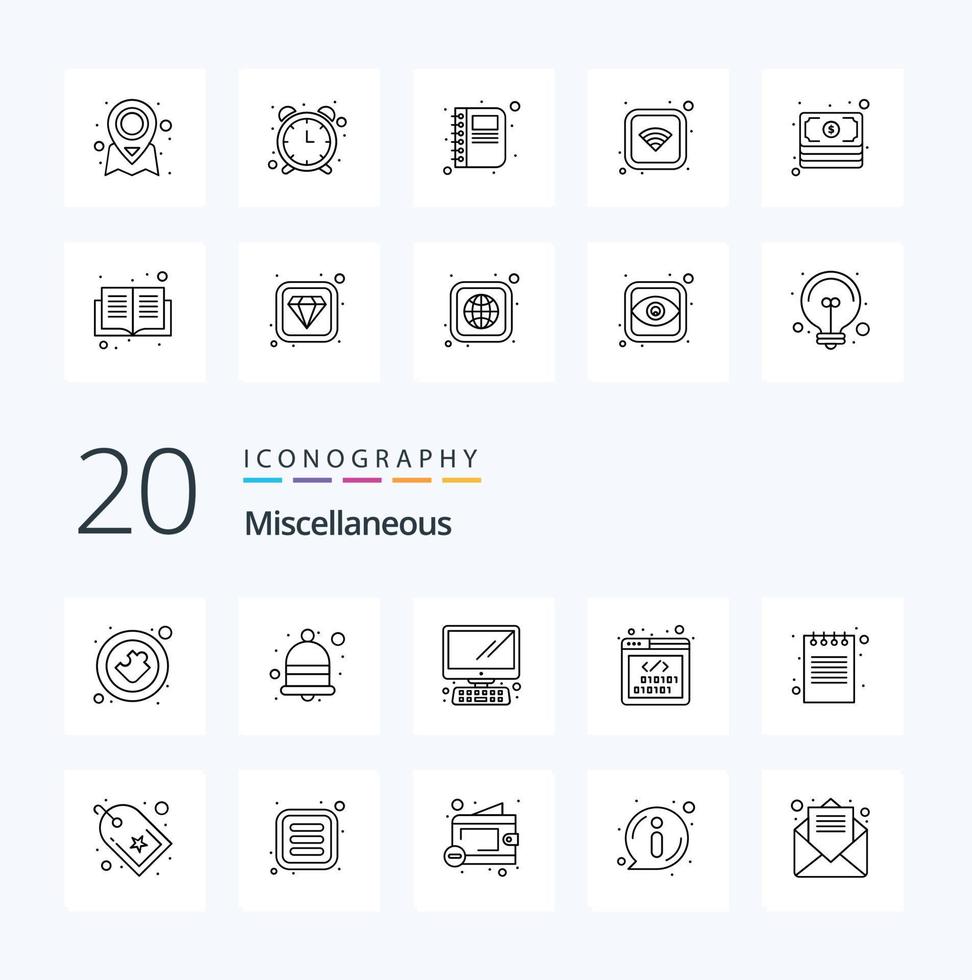 20 Miscellaneous Line icon Pack like diary computer web coding vector