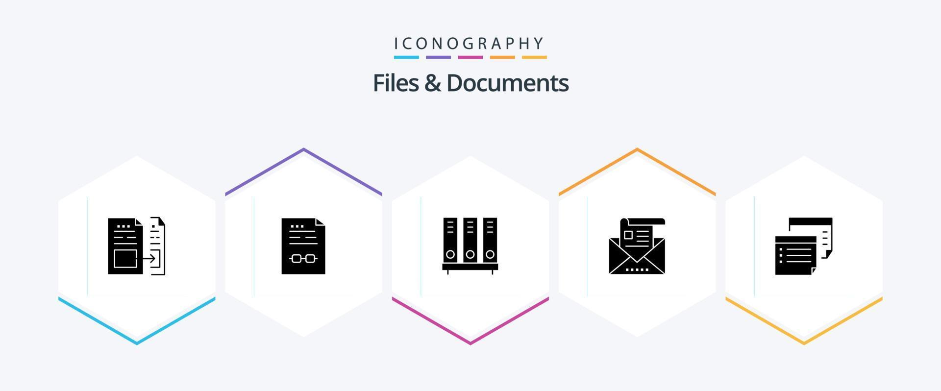 Files And Documents 25 Glyph icon pack including email. address. contract. file. database vector