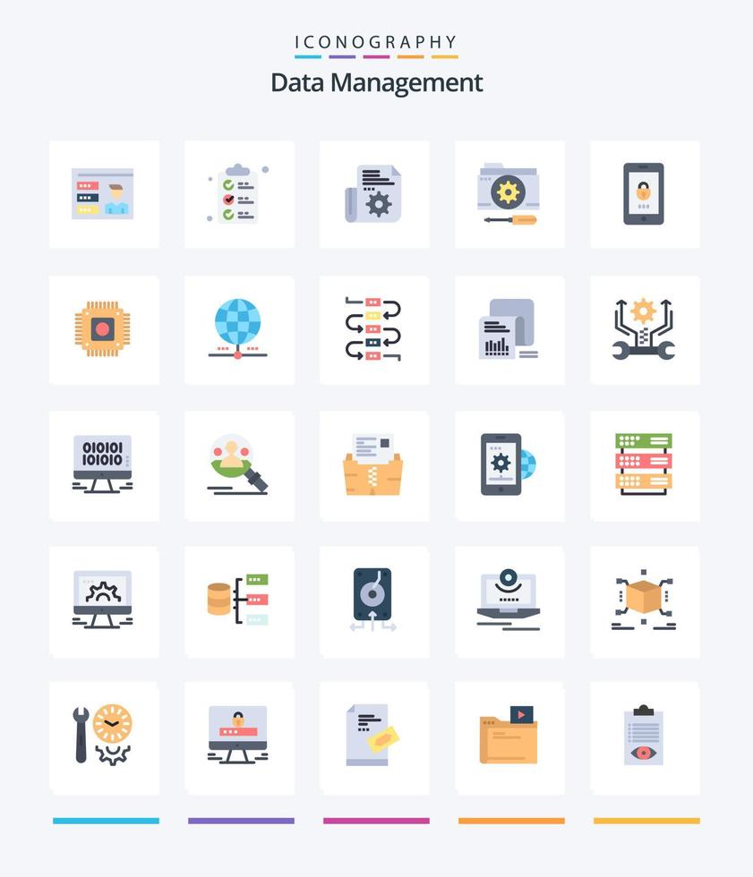 Creative Data Management 25 Flat icon pack Such As encryption. setting. document. options. configuration Free Vector