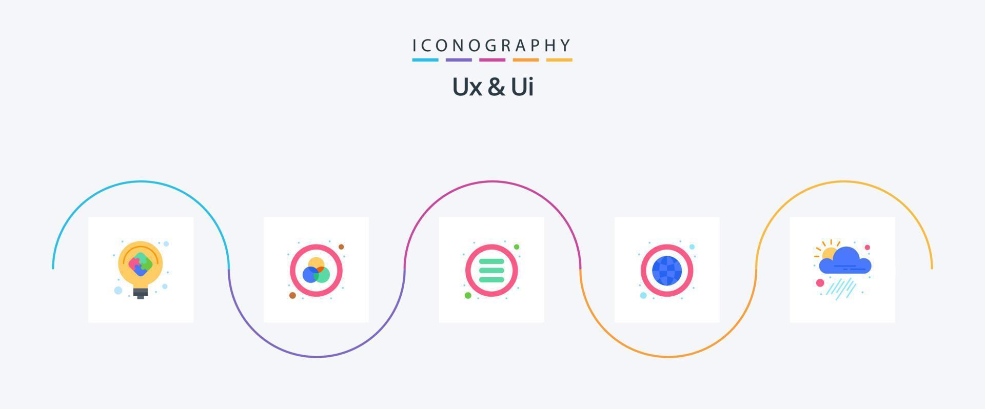 Ux And Ui Flat 5 Icon Pack Including application. globe. list. network. earth vector