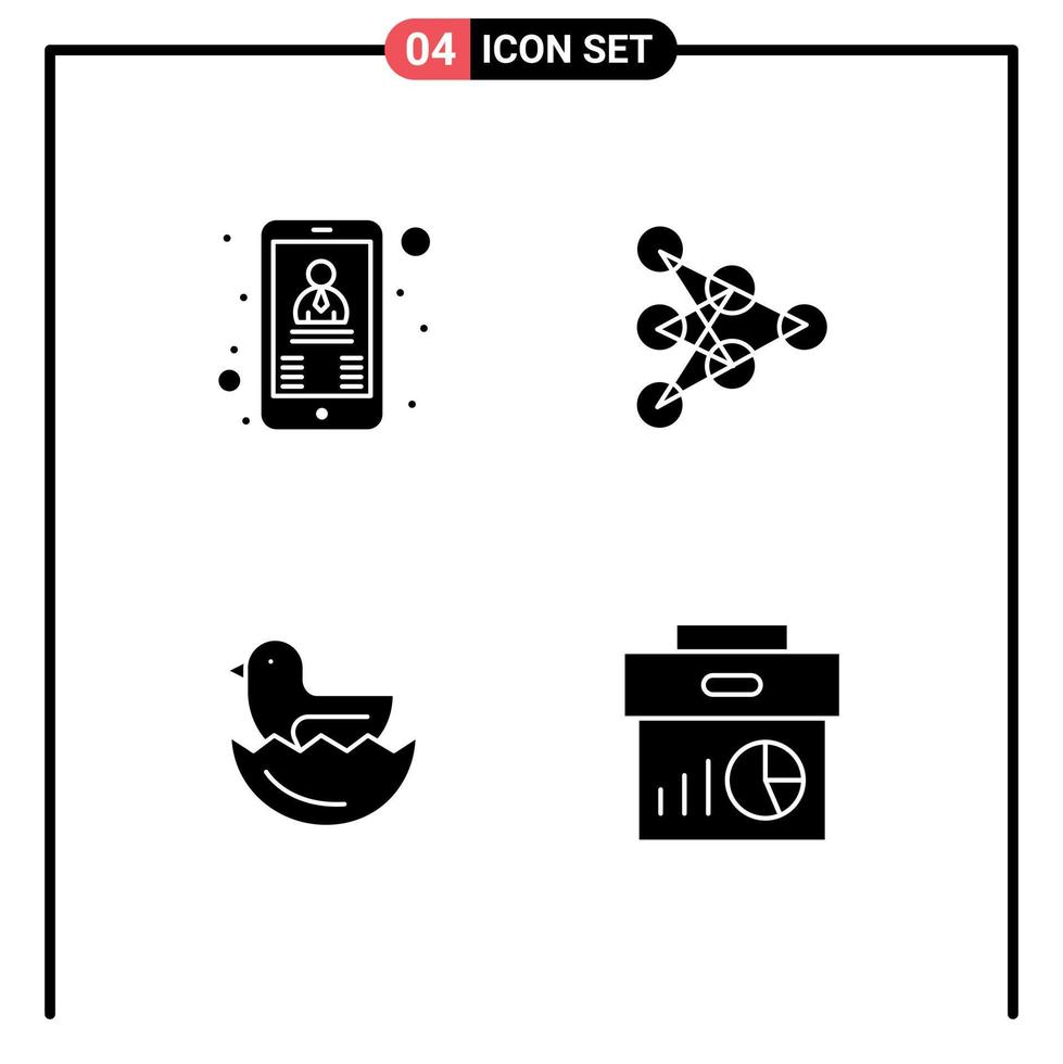 4 Universal Solid Glyphs Set for Web and Mobile Applications contact egg boss algorithm business Editable Vector Design Elements Free Vector