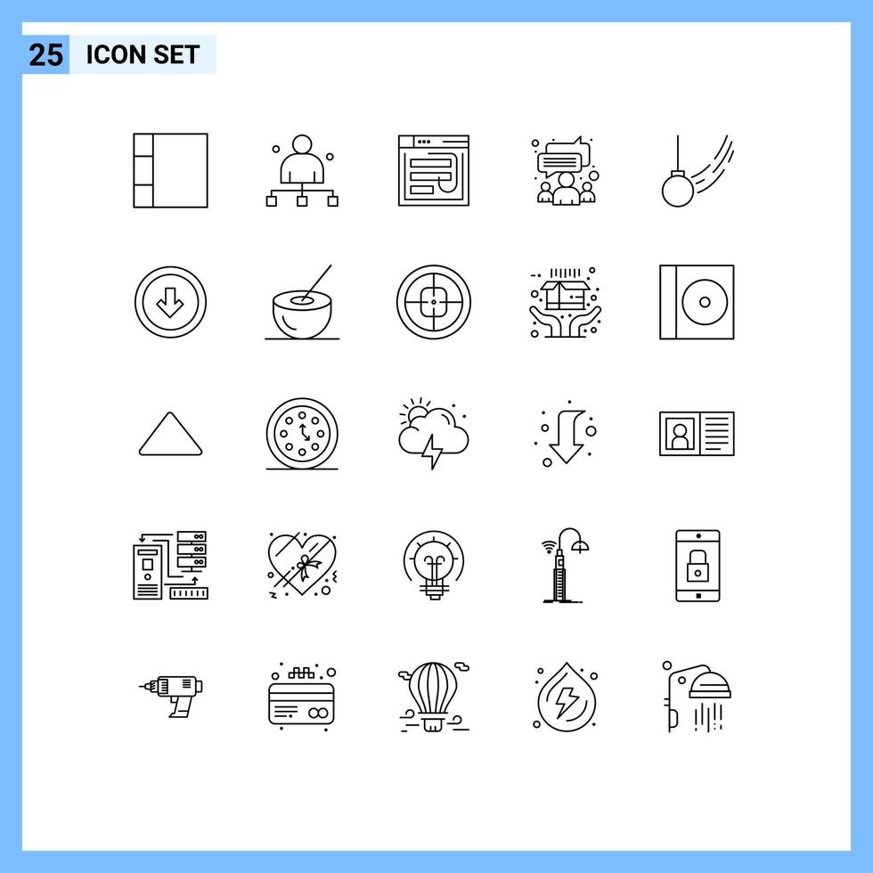 Mobile Interface Line Set of 25 Pictograms of team group hack chat web Editable Vector Design Elements Free Vector