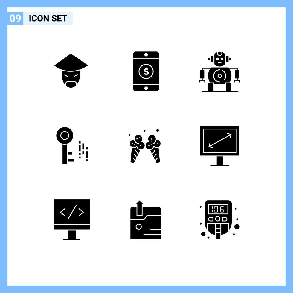 9 User Interface Solid Glyph Pack of modern Signs and Symbols of diagonal cream robotics ice key Editable Vector Design Elements
