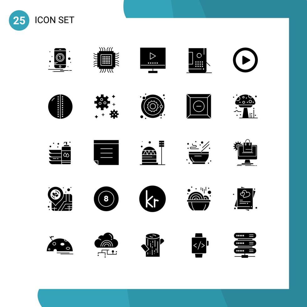 25 Thematic Vector Solid Glyphs and Editable Symbols of development coding information bucket tv Editable Vector Design Elements Free Vector