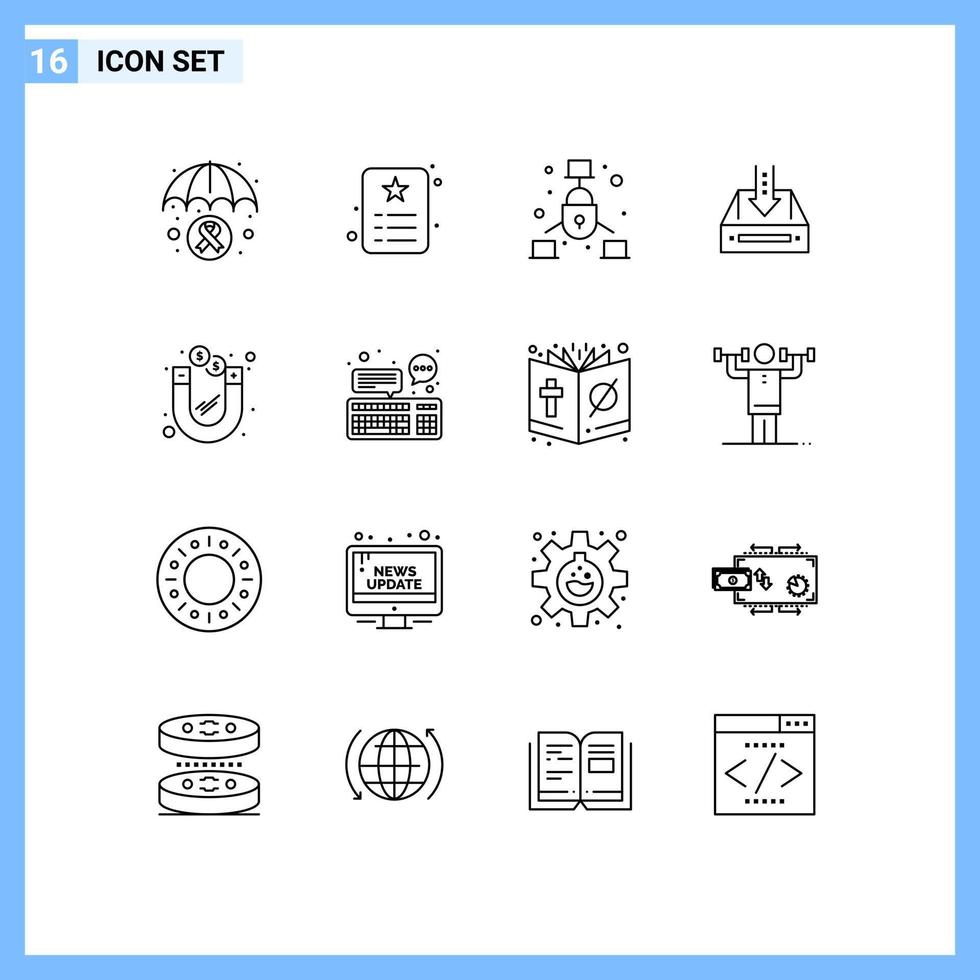 Mobile Interface Outline Set of 16 Pictograms of empty cabinet identity box security Editable Vector Design Elements Free Vector