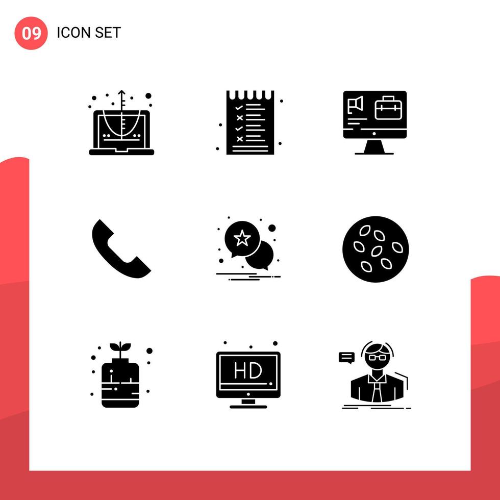 User Interface Pack of 9 Basic Solid Glyphs of star mobile computer telephone call Editable Vector Design Elements