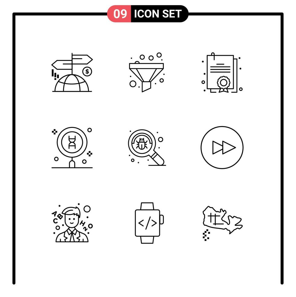 User Interface Pack of 9 Basic Outlines of search bug degree search laboratory Editable Vector Design Elements Free Vector