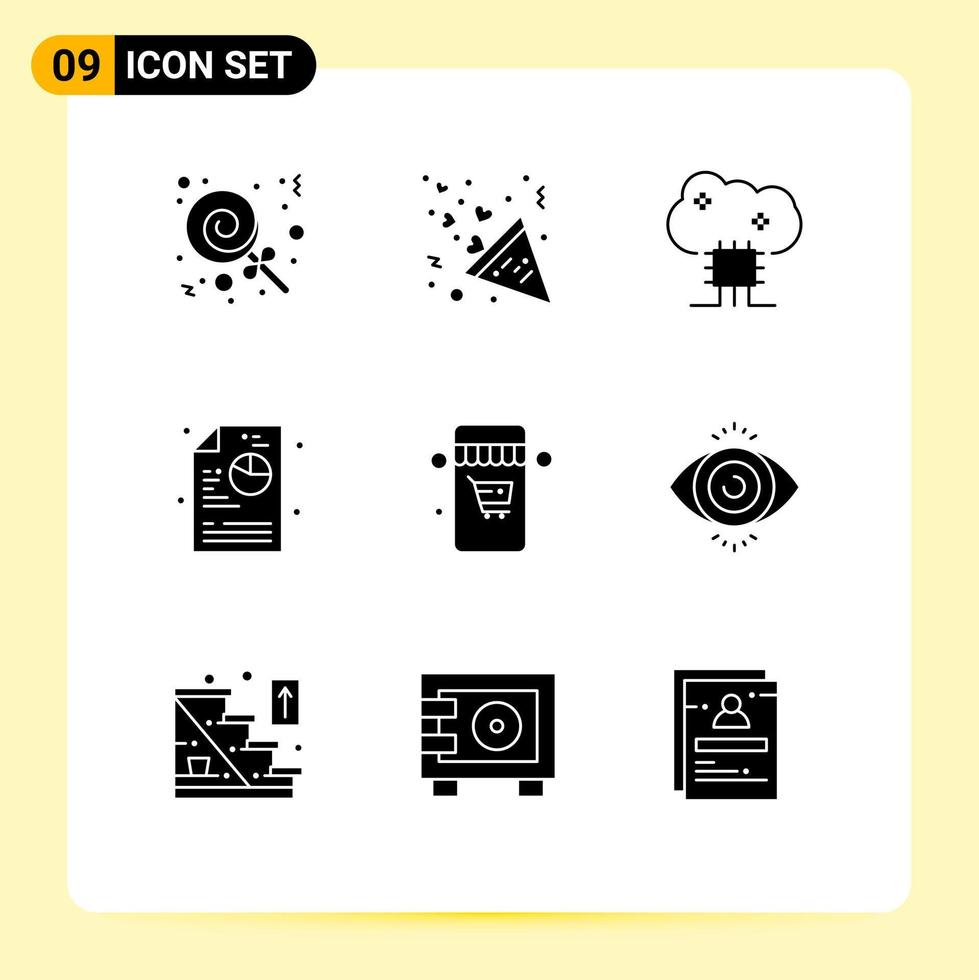 Pack of 9 Modern Solid Glyphs Signs and Symbols for Web Print Media such as cart online cloud database diagram creative Editable Vector Design Elements