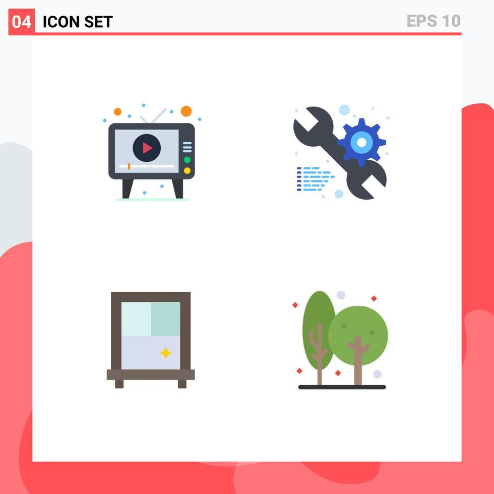 Set of 4 Modern UI Icons Symbols Signs for ad window play setting crops Editable Vector Design Elements