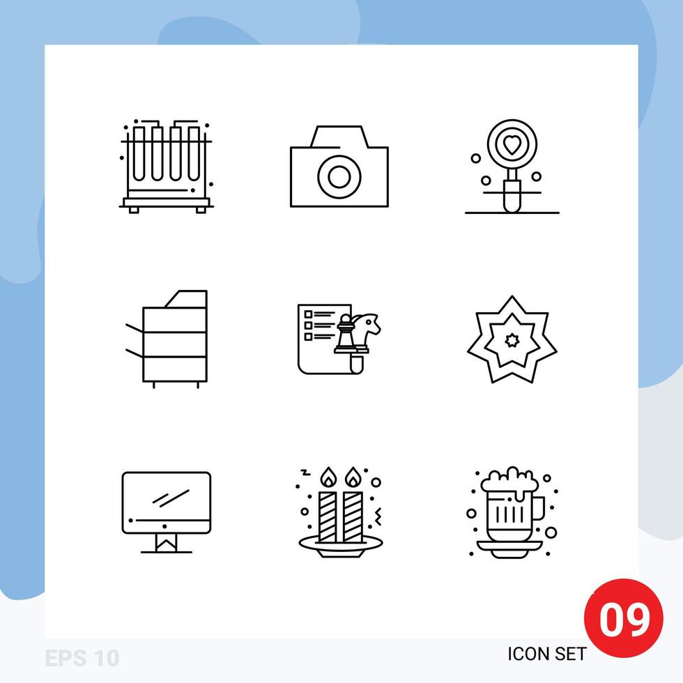 9 User Interface Outline Pack of modern Signs and Symbols of strategy chess search technology electronics Editable Vector Design Elements Free Vector