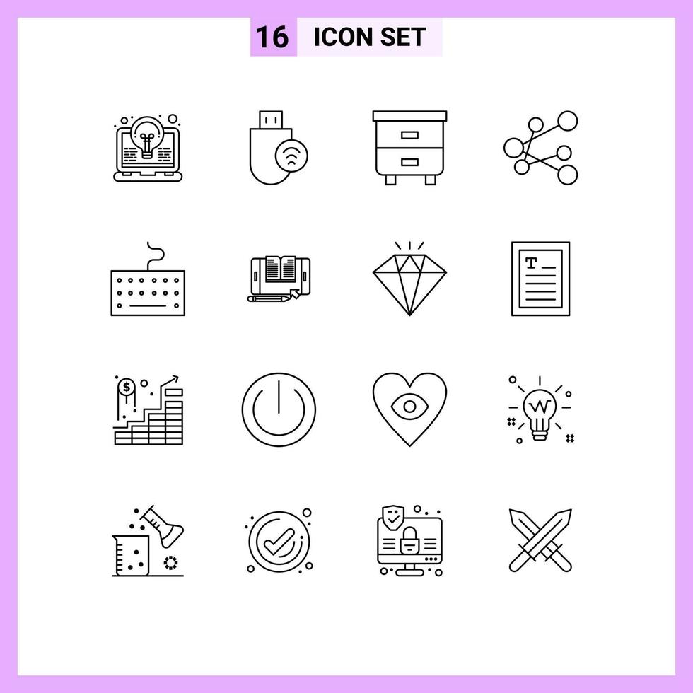 16 Universal Outlines Set for Web and Mobile Applications hardware link signal export furniture Editable Vector Design Elements