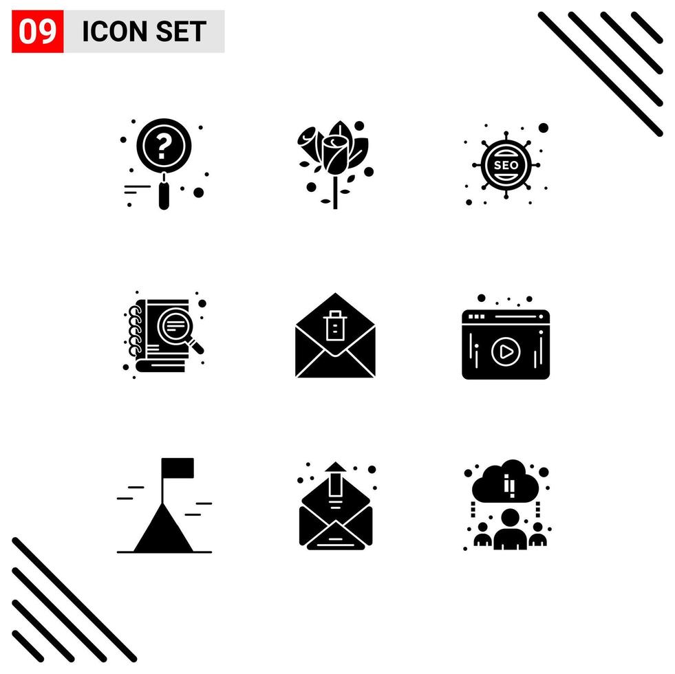 9 Solid Glyph concept for Websites Mobile and Apps delete mail optimization seo development Editable Vector Design Elements Free Vector