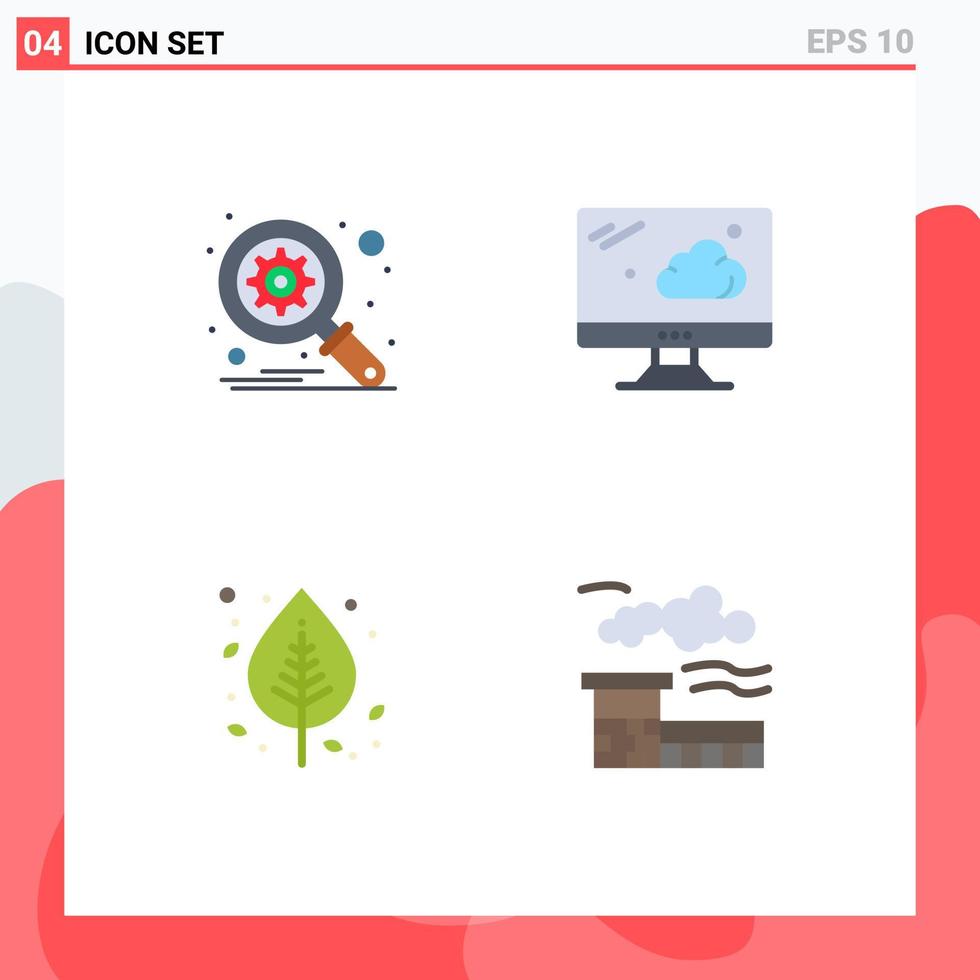 Pack of 4 Modern Flat Icons Signs and Symbols for Web Print Media such as database nature cloud autumn factory Editable Vector Design Elements Free Vector