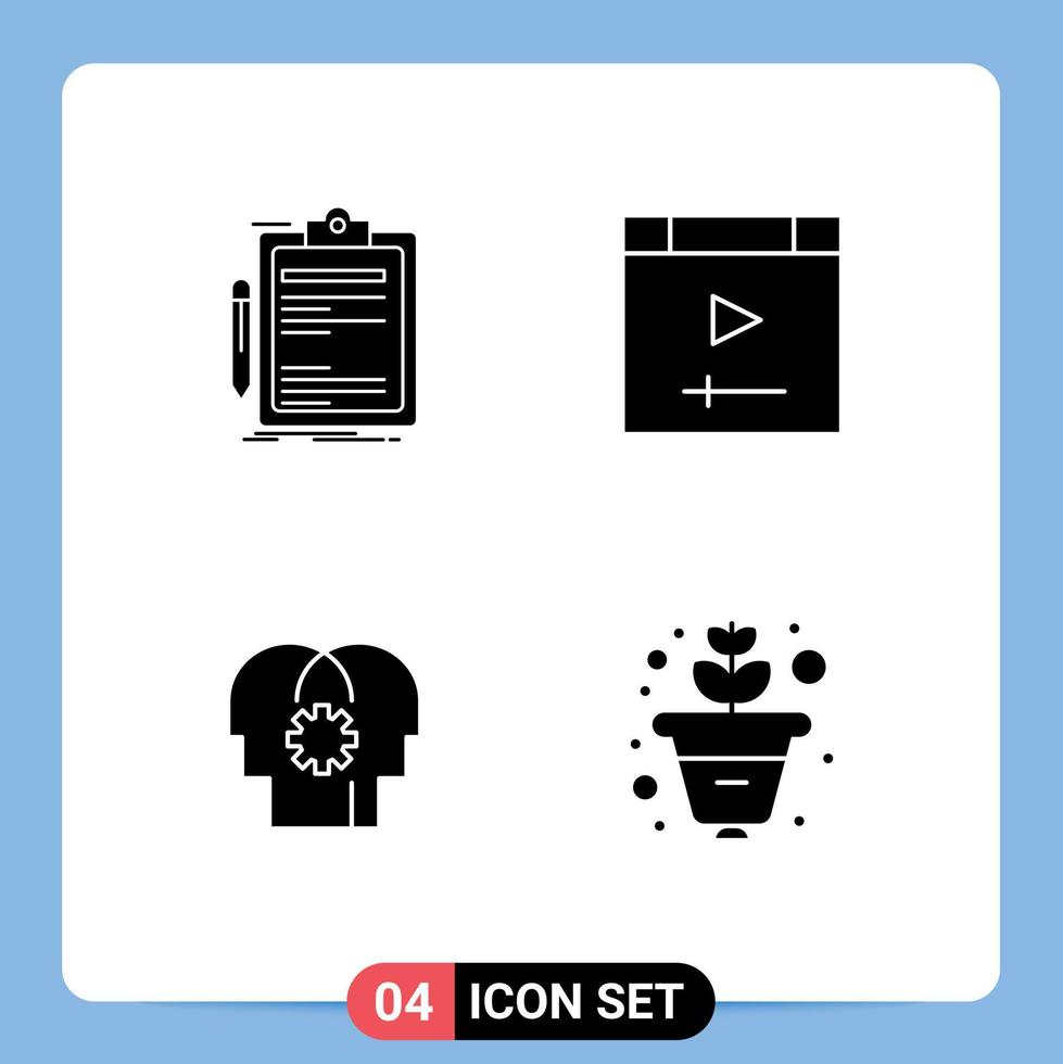 Group of 4 Modern Solid Glyphs Set for contract brain done computer mind Editable Vector Design Elements