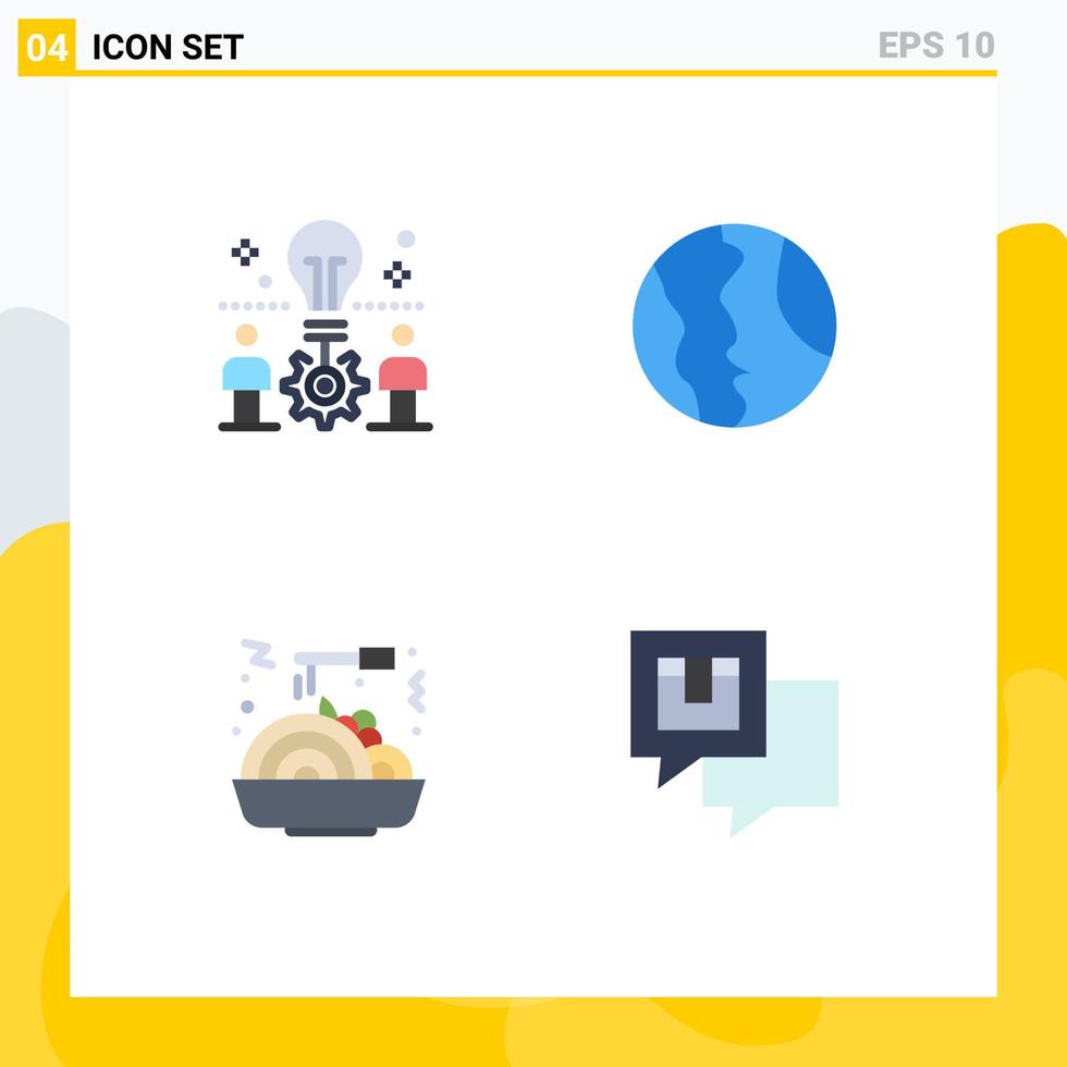 Mobile Interface Flat Icon Set of 4 Pictograms of team geography solution location food Editable Vector Design Elements
