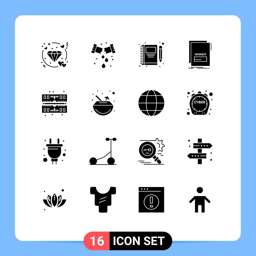 Group of 16 Modern Solid Glyphs Set for script maleficient book link write Editable Vector Design Elements Free Vector