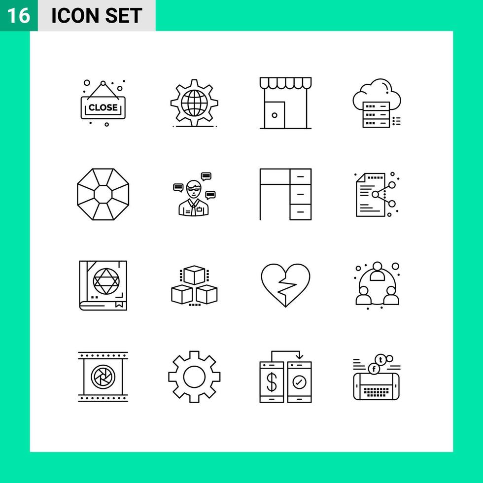 16 User Interface Outline Pack of modern Signs and Symbols of diamond cloud institute building data sever Editable Vector Design Elements Free Vector