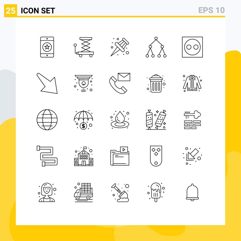 User Interface Pack of 25 Basic Lines of electronic devices scissor topology link Editable Vector Design Elements